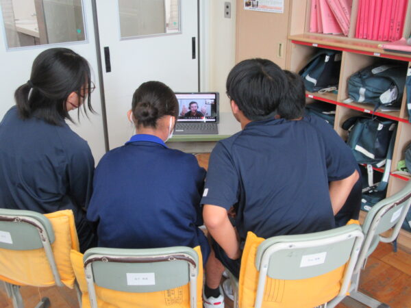 生徒たちは、授業等で学習した英語表現等を使い、タブレットの向こう側にいるALTとの英会話を楽しみました。