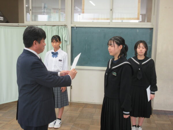 「はい」という短い返事の中に、後期リーダーの意欲が伝わる辞令伝達式となりました。その前向きな姿から、リーダーに協力しようという気持ちを高めました。よりよい自治的な活動を目指し、取り組む姿を期待します。