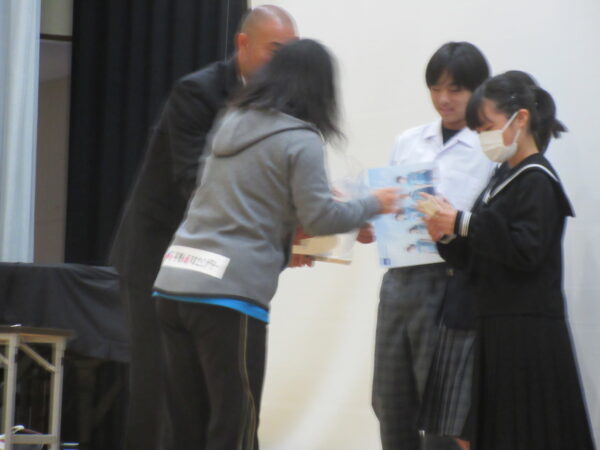 保健委員会の生徒が実施した事前アンケートの結果報告を皮切りに始まった講演会は、真理子さんが生徒の質問にに答えていく形式で進み、❝努力❞、❝やる気❞、❝食事❞、❝夢❞などについて語っていただきました。オリンピック選手の母であり自らも教育者、卓球の指導者である真理子さんからは、子どもたちを支える親がどのように関わるべきか等のご示唆もいただきました。