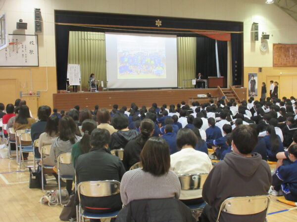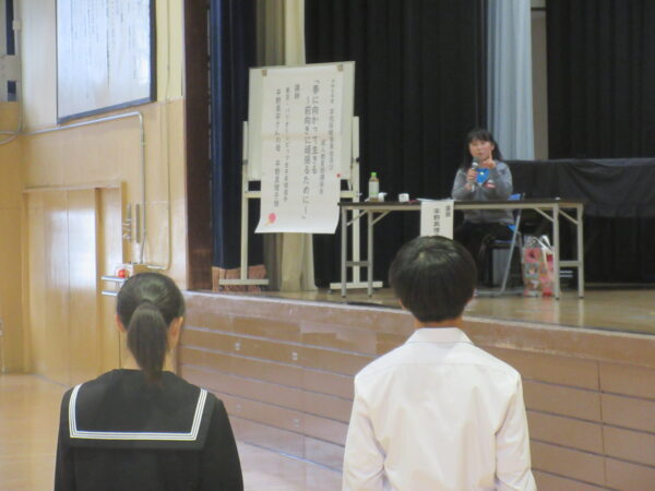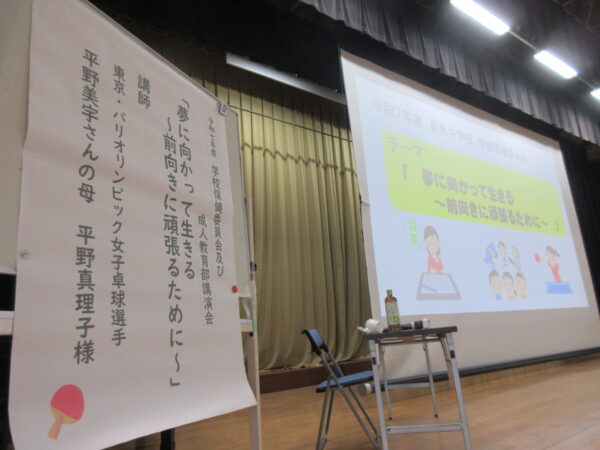 卓球オリンピアン平野美宇さんの母、平野真理子さんを講師としてお迎えし、『夢に向かって生きる~前向きに頑張るために~』と題した講演をしていただきました。