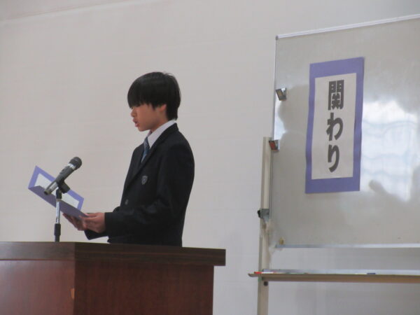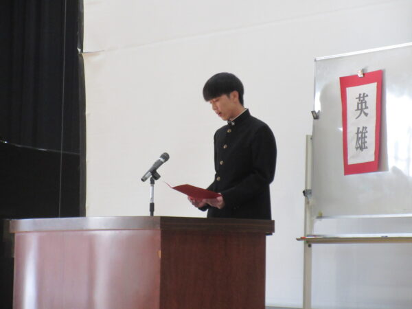 年が明け、学校の主役が戻ってきました。静粛な雰囲気の中行われた「年始を誓う会」では、学年代表生徒が新年の決意を堂々と語りました。