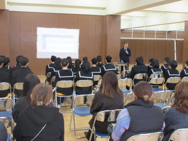 7月に実施した公立高校説明会に引き続き、本日は私立高校の先生方を講師としてお招きして実施しました。各校の特色や生活についてお話しいただいたことで、なりたい自分に向けてのイメージをふくらめることができたでしょうか。今後は、オープンスクールなどに積極的に参加し、自分の目で見で肌で感じたことを参考に、進路を考えていきましょう。